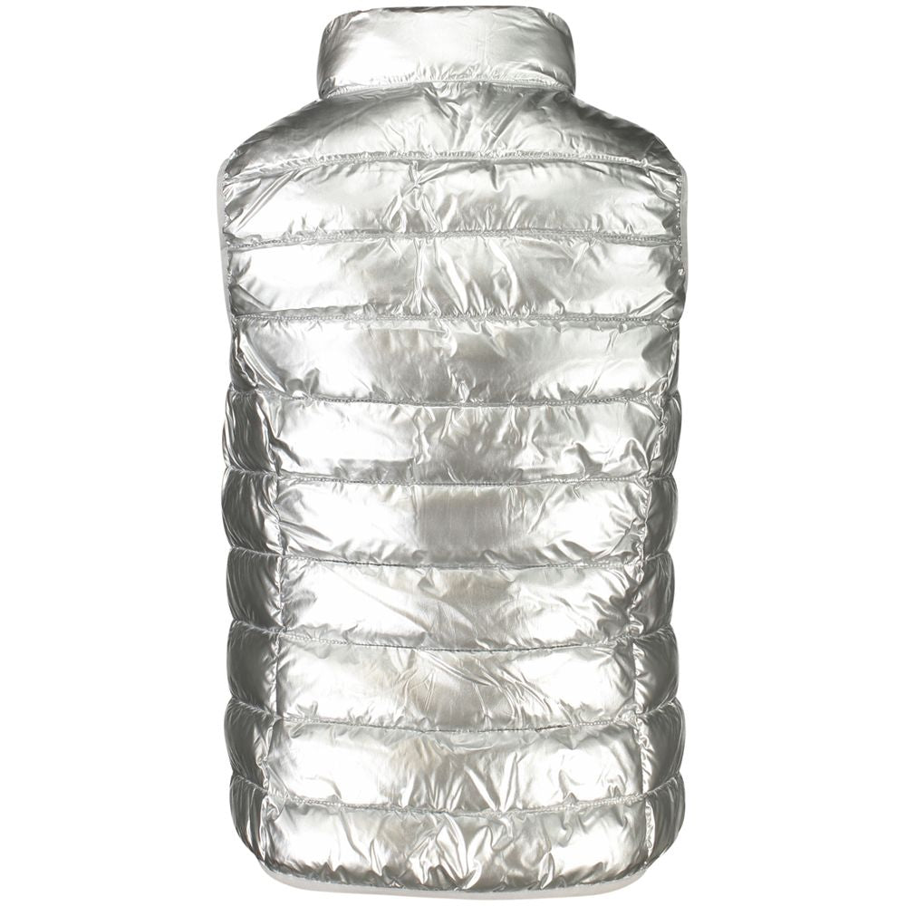 Experience the seamless fusion of practicality and style with Norway 1963’s sleeveless jacket. Designed for the woman on-the-go, this gray polyamide piece promises to elevate your ensemble with its contrasting details and sophisticated applique logo. Effortlessly transition from day to night with two external pockets for your essentials and an additional two internal pockets for added security. The zip closure ensures a perfect fit, highlighting your figure with pure elegance. Norway 1963 invites you to embrace the bold and trendy, making a statement that resonates with contemporary fashion.