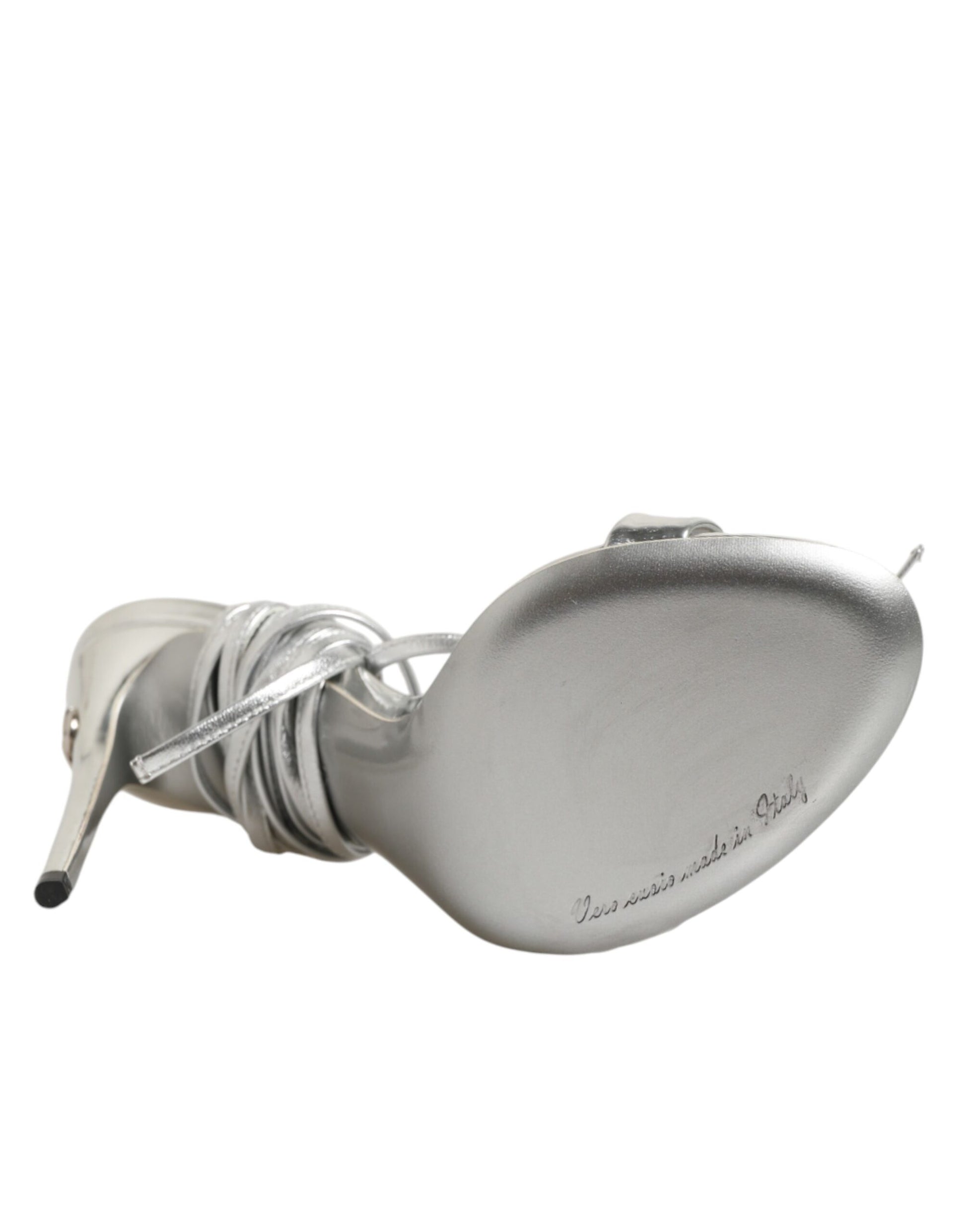 sandals embody refined elegance and modern glamour. Crafted in metallic silver, they feature slender strappy detailing that gracefully wraps the foot, creating a sleek and sophisticated silhouette. The high stiletto heel adds height and allure, making them the perfect choice for evening events, parties, or any special occasion that calls for a touch of luxury.