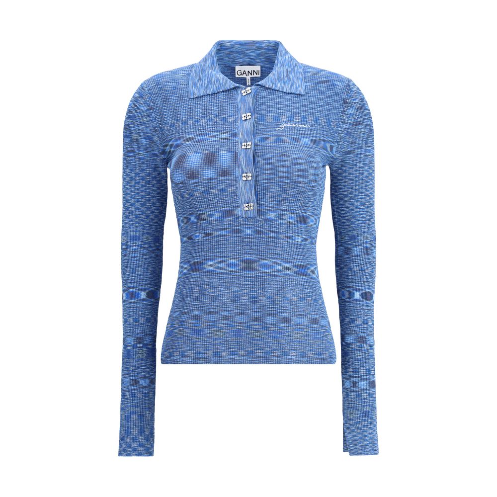 Ganni’s Striped polo Sweater combines sporty style and distinctive details. Featuring a classic collar, front button placket and long sleeves, it is finished with an embroidered GANNI logo and silver-tone butterfly logo buttons for an iconic and original touch.